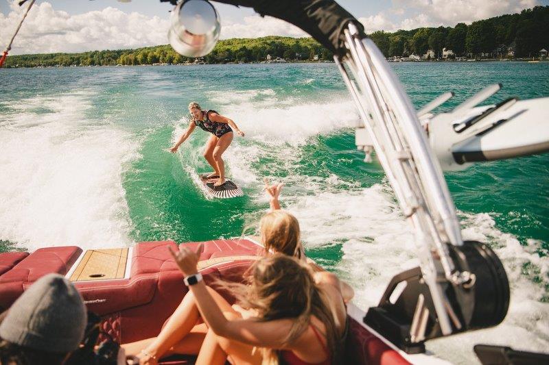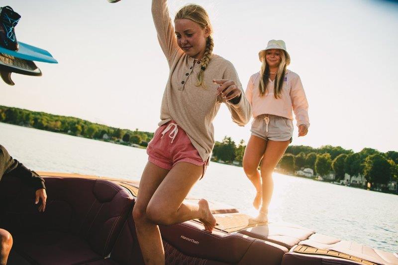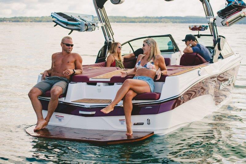 Options are always nice, and the MasterCraft XT series has options galore. When it comes to the tower, you have your choice of 3 options including a tower with clamping board racks that swivel in and out for easy loading and unloading. To lower your tower, simply unlock the hand latches then pull the tower straight down. If you have surfers in your family, they will benefit from the tow nodules on the side of this tower – it makes learning to get up onto a surfboard easier than ever. Most people opt for the BTS windshield upgrade. It is sturdy and has a cutout on the driver’s side to allow for docking your boat without having to stand up. And even more options to choose from such as the plethora of colors, gelcoat and MasterCraft logo options.