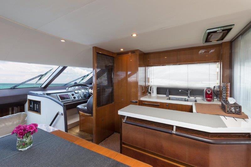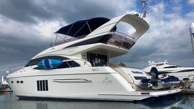 This magnificent Princess 64 Flybridge Yacht has a full-beam master cabin with amazing views through large hull windows. There are also 4 well appointed ensuite and spacious guest cabins.Â