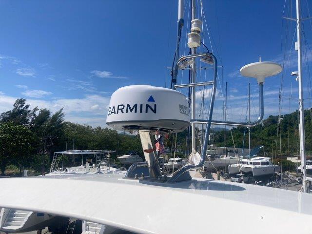 A large centre console RIB tender with 40hp outboard is stored aft on the hydraulic swim platform.